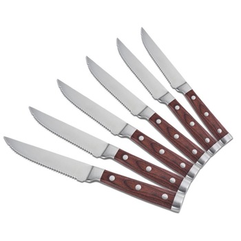 Juego de cuchillos para carne con mango de madera de color rojo, Serie 6 juegos de caja de regalo, herramienta de cabeza de sodio, fábrica, puede hacer herramientas de marca